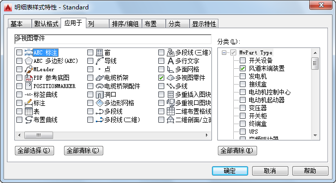 由于软件中的多数设备是多视图零件,许多设备明细表样式使用分类来确保仅以所需零件类型数据填充明细表。