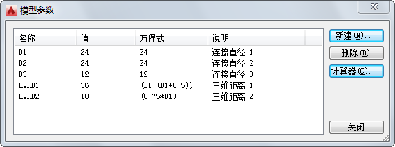 - 双击“LenB2”对应的“方程式”值,输入方程式 (0.75 * D1),然后单击“关闭”。