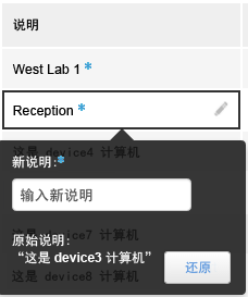 设备名称(反映 NT 计算机名称)可能含义模糊,并且可能很难与实际设备或用户联系起来。作为管理员,您可以编辑(别名)设备名称、设备说明和用户名称来使它们更有意义,并在使用设备过滤器时,帮助设备按有用的序列显示。例如,您可以在设备名称中使用文本字符串(例如,DES 和 SALES)将设计计算机和销售计算机区分开来。如果您在多个城市中拥有设备,您可以将城市包括在设备说明中,以便按位置分类设备。