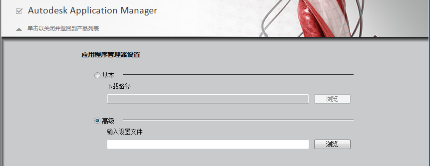 - 在 Application Manager 配置面板中,单击“高级”,然后浏览到设置 .INI 文件的位置。此文件已添加到展开映像中。