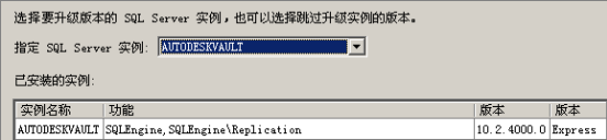 - 选择要升级的 AutodeskVault 实例,并确认实例设置。