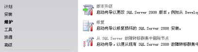 - 从完整版 SQL 2008 安装介质启动 Setup.exe。选择“维护”选项,然后启动“版本升级”向导。