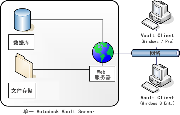 Autodesk Vault 包含两个组件:客户端和服务器。