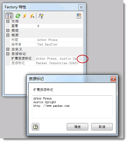 可以在 Inventor Factory 布局中放置的资源上以及导入的模型和部件上创建资源标记。请执行以下操作来创建资源标记。