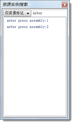 “搜索”功能可帮助您查找具有特定资源标记、描述符或者这两者的所有资源或插入的零部件。只需输入标注的一部分进行搜索即可,并且大写字符和小写字符均接受。
