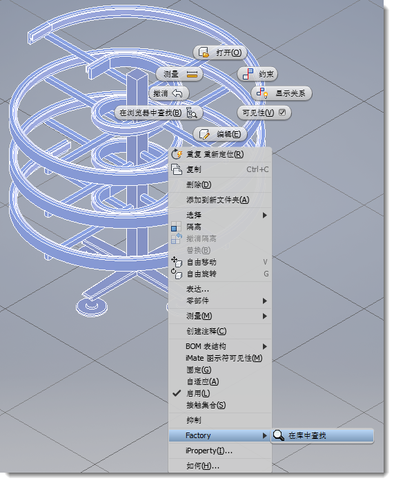 如果您需要找出放置的资源在资源库中的位置(可能要编辑该资源或进行复制),请在布局中该资源上单击鼠标右键,然后选择“Factory”>“在库中查找”: