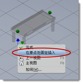 完成以下步骤可将零部件自动放置并固定在布局原点 (0, 0, 0) 处。如果模型包含定义的插入点,则插入点将与布局原点对齐。