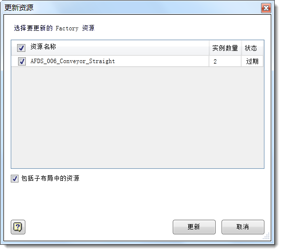- 在“Factory”功能区中单击“更新资源”以显示过期资源的列表。