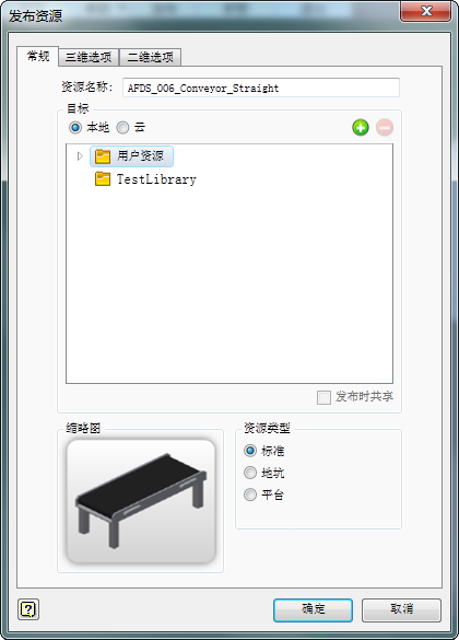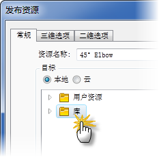 当项目处于激活状态时,项目库将以名称“库”显示在“发布资源”对话框中。