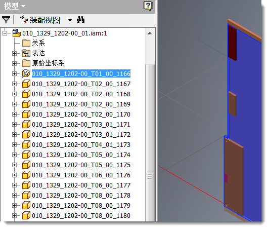 - 在“模型”浏览器中单击导入的部件旁边的 +。