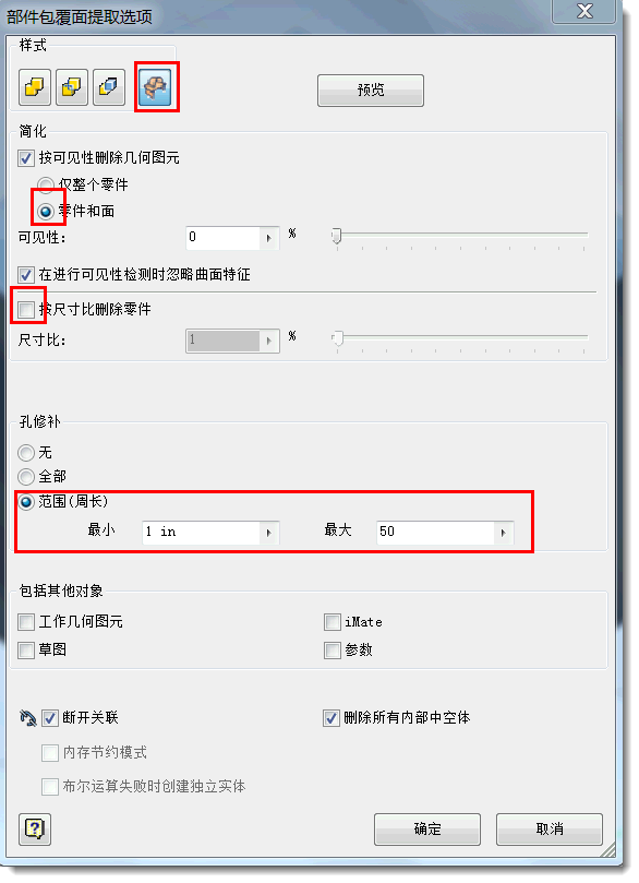 “转换为资源”命令使用包覆面提取功能来简化文件。正确配置简化选项对于成功创建轻量级模型至关重要。