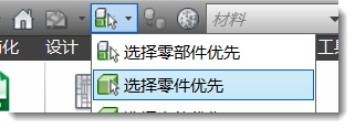 - 从菜单栏中,将选择优先级更改为“选择零件优先”。