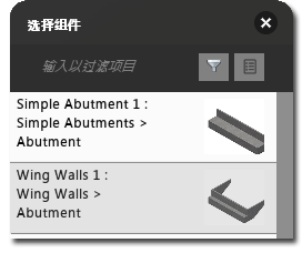 选择桥台组件样式名称,在目录中选择另一个参数化桥台组件样式。