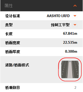 桥梁的桥面样式使用具有三维模型装饰(如中间带、道路隔离带、扶手和围栏)的道路样式。这些样式存储在街道/桥面样式目录中,该目录位于“样式”选项板的“道路”选项卡上。