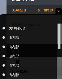 内部大梁和外部大梁是大梁组中的桥梁组件,可以单独进行编辑。选择单个大梁,查看和修改预制大梁样式目录中的单个大梁组件样式,调整偏移,或查看大梁原理图。
