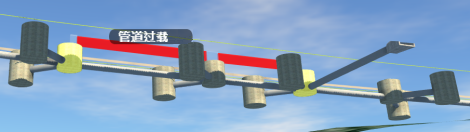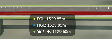 蓝色条:管道中的水深(而非水流);即,水力坡降线。