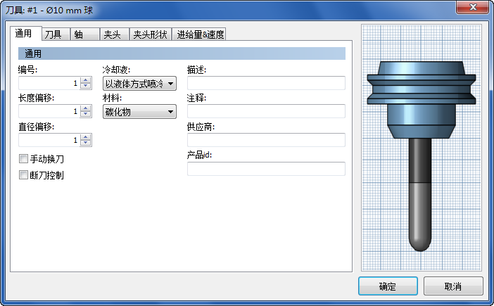 刀具的供应商标识符 (ID)。可以使用该选项来确定使用的特定刀具。
