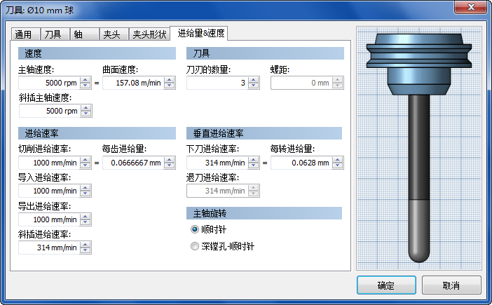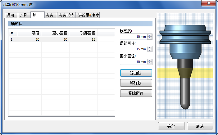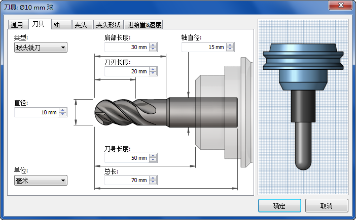 该对话框右侧的预览显示了刀具的形状,并且会自动更新以反映您进行的任何更改。