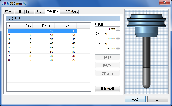 选定刀具夹头段的高度。