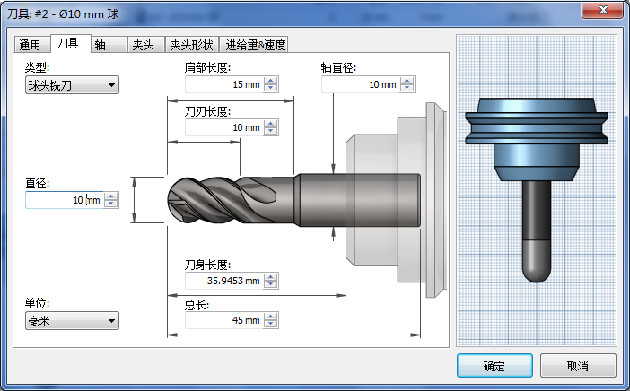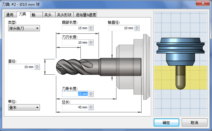 在“检测刀具长度”处于激活状态的情况下生成刀具路径并且刀具太短时,将会向日志输出以下警告:警告: 刀具长度已由 25 毫米更新至 35.9453 毫米,以确保夹头不会与零件碰撞。