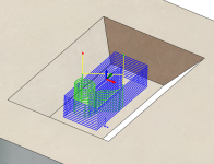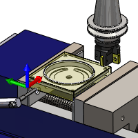 最快速的模拟模式。模拟时仅限于使用由质量滑块控制的有限分辨率。该模式仅在以相同刀具朝向模拟 3 轴铣削操作时可用。该模式无法模拟退刀槽。