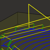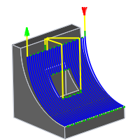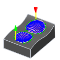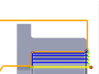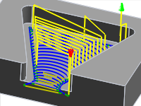 对于多个轮廓的情况来说,执行此排序后,将首先进入具有最小 Z 层刀具朝向的加工路径来通过一次操作完成加工。在加工像石墨等脆性材料时,该方法非常有用。