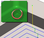 启用该选项可为挖槽创建固定环切移动刀具路径。这可以在机床上提供一个平滑的路径。