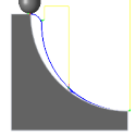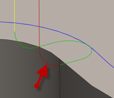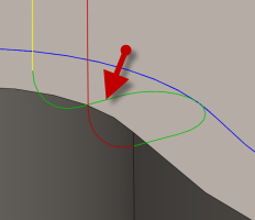 当使用负径向加工余量大于转角半径的球头刀具或半径刀具时,负轴向加工余量必须小于或等于转角半径。