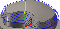 启用该选项后,将从由所有范围特性(加工边界、坡度、高度等)定义的范围边界生成加工路径。禁用该选项后,将从加工边界生成加工路径,这会导致加工路径通常不沿着曲面延伸。