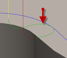 指定在曲面的陡峭面垂直于加工方向的位置添加额外加工路径。该选项对于切削方向需要保持一致以避免在零件上留下痕迹的注塑模具非常重要。