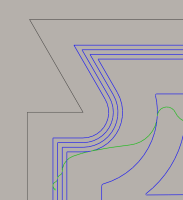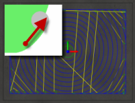 当在“环绕等距”操作中使用坡度范围和/或残料加工时,您可以启用“加工由边界定义的区域”复选框,以开始从由坡度和/或残料检测创建的边界偏移刀具路径。