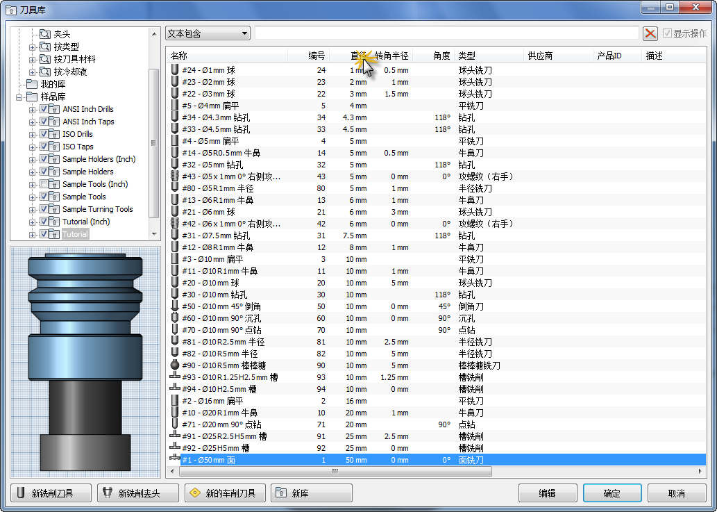 中列出的刀具进行排序。例如,如果您希望所列刀具按直径排序,只需单击