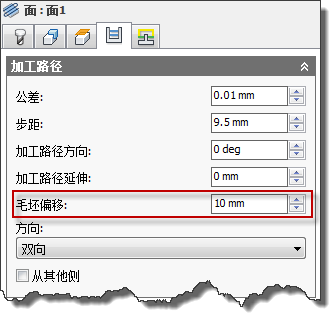 “面”策略允许您通过“毛坯偏移”设置为自动或手动毛坯轮廓指定附加偏移。