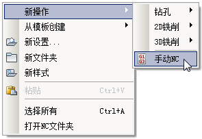 从“新建操作”关联菜单访问“手动 NC”