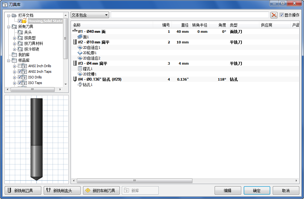 在处理工件时,通常需要定义几个刀具并对其进行测试,以便获得选定操作所需的结果。在完成零件加工的所有操作后,您可能发现在当前文档的“刀具库”中有很多未分配给任何操作的刀具(未使用的刀具)。