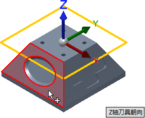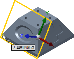 接下来,在零件的倾斜面上设置刀具朝向和原点。