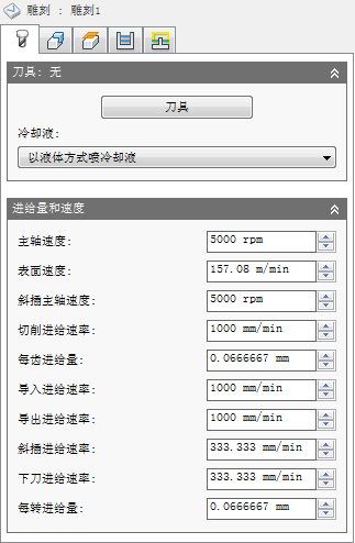 “退刀高度”用于设置在进入下一个切削加工路径之前刀具向上移动的高度。“退刀高度”应设置为高于“进给高度”和“顶部高度”。“退刀高度”与后续偏移一起使用来确立高度。