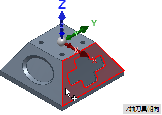 - 确保“Z 轴刀具朝向”按钮处于激活状态,并选择如下图所示的倾斜面: