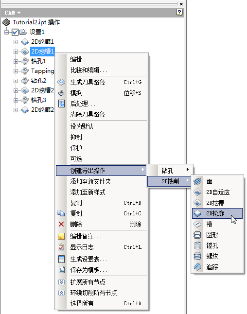 例如,如果您要在使用平行策略后跟着使用轮廓策略,并且大部分设置(加工余量、公差、步距、边界等)都相同,则使用导出操作比使用全新的操作更容易。