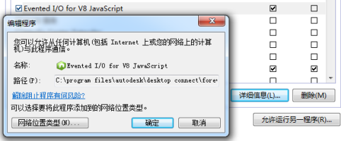 防火墙问题:Node.exe (Evented I/O for V8 JavaScript) 被防火墙阻止。