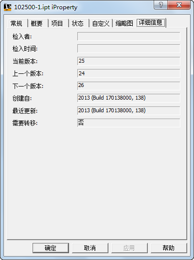 Inventor 可以使用 iProperty 检查文件的移植状态。