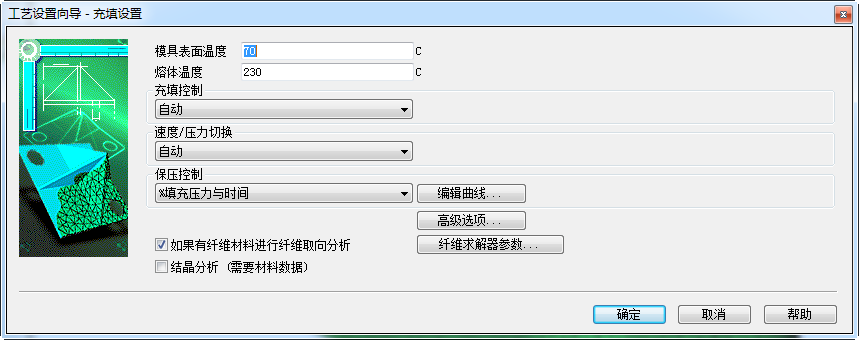 在此步骤中,您将查看成型工艺设置并开始分析。