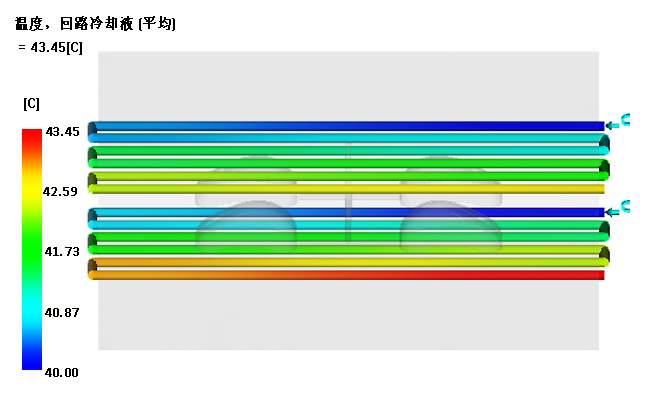 此结果最好不要比冷却液入口温度高出 5°C。型芯中有些位置会大于此理想值。