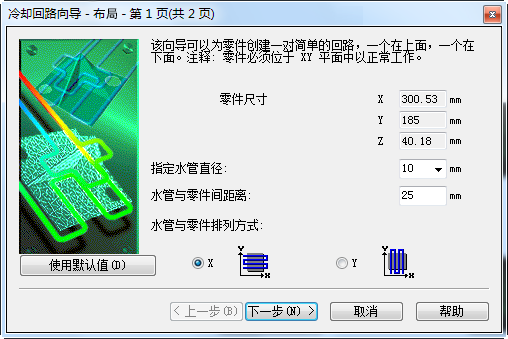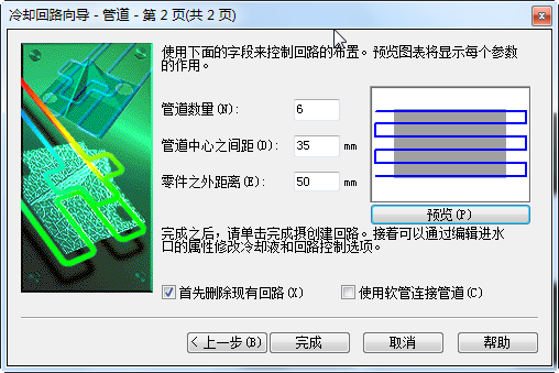 在本任务中,您将使用“冷却回路向导”创建简单的冷却管道。