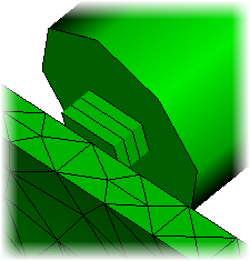 单击“编辑尺寸”,将“宽度”和“高度”分别设置为 2 mm 和 1 mm,然后单击两次“确定”。此时浇口形状类似下图。
