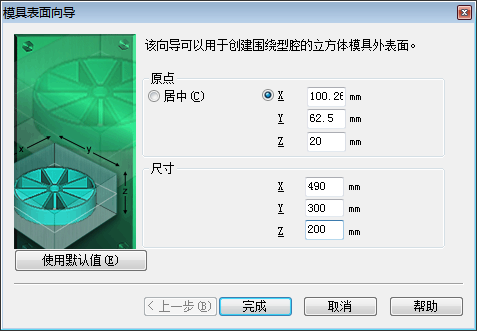 在本任务中,您将使用“模具表面向导”创建模具边界。
