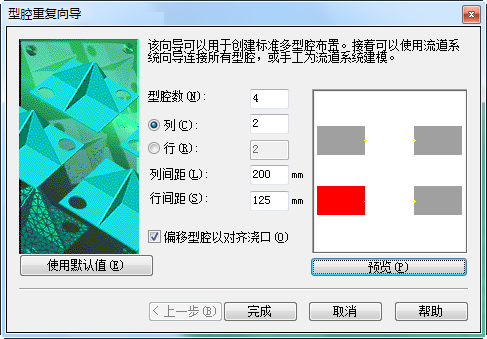 输入 4 作为“型腔数”。
