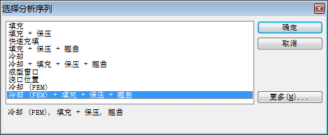 单击“冷却(FEM) + 填充 + 保压 + 翘曲”。