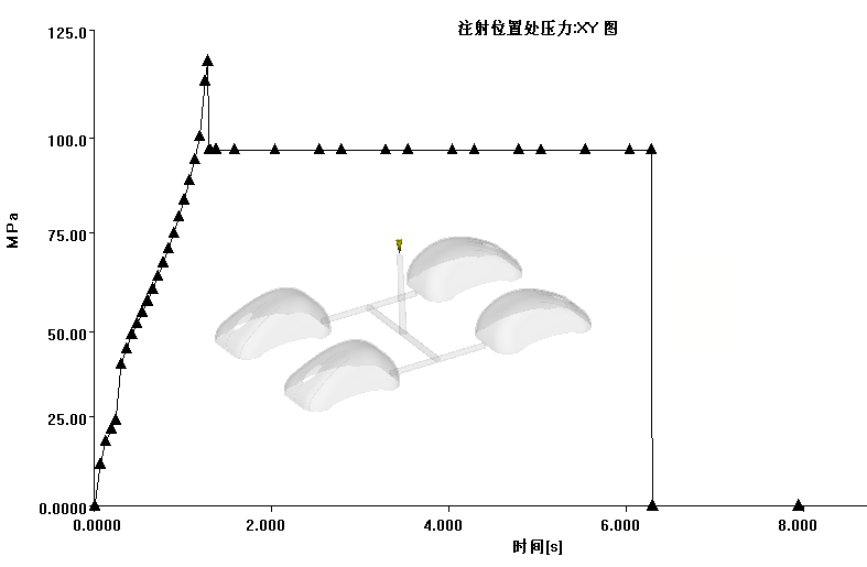 单击“注射位置处压力:XY 图”。