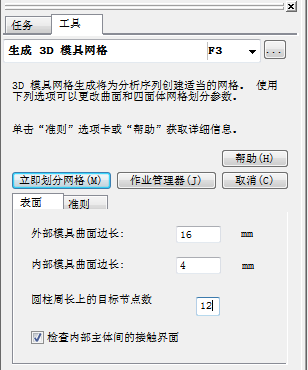 输入 16 mm 作为“外部模具曲面边长”。